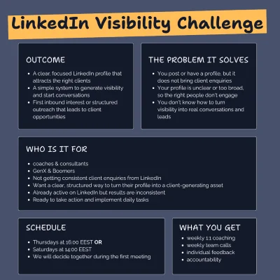 A structured 6-week programme for professionals ready to turn LinkedIn presence into real opportunities.